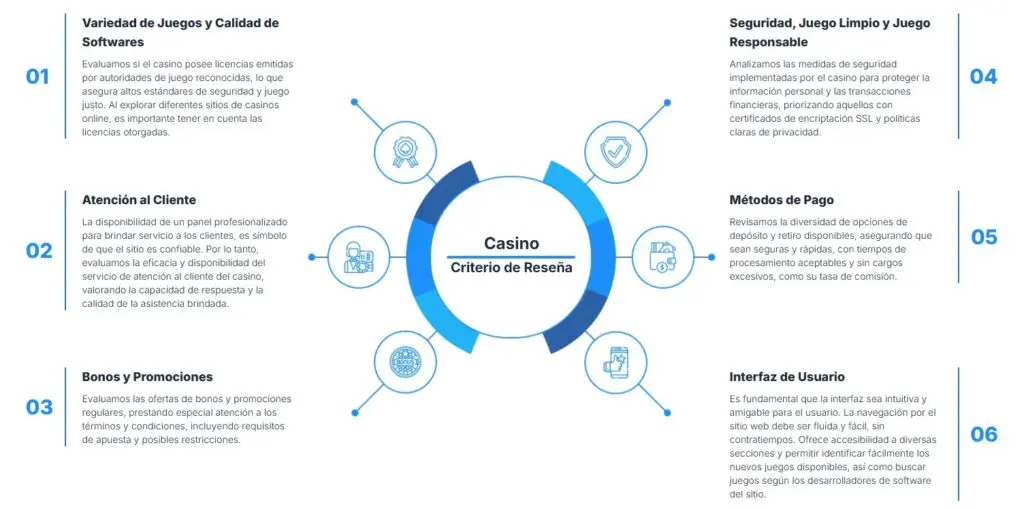 Hemos desarrollado un sistema de análisis respaldado por la experiencia directa de nuestros expertos, quienes han evaluado personalmente cada casino online según el mercado geográfico. Nuestro enfoque se centra en identificar los mejores casinos online en LATAM, España y Norteamérica para usuarios de habla hispana.